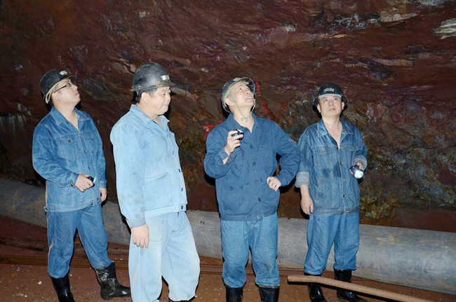 上午9时许,集团公司领导一行深入到矿山井下生产作业现场,向生产一线的员工致以节日的问候,并与他们亲切握手。林振东书记等领导深入到矿山井下各采场、作业档面,与作业现场员工进行亲切交谈,了解他们的工作、生活情况,对他们在工作中取得的成绩给予了充分肯定,对他们爱岗敬业、长期以来为矿山安全生产做出的贡献表示衷心感谢,希望他们继续发扬玉水建矿“五种精神”,圆满完成各项任务,以安全生产的优异成绩为集团公司实现新的发展壮大做出贡献。对集团公司领导深入矿山井下一线看望慰问基层员工,员工们深受感动,表示将认真贯彻落实好集团公司“一稳二找三突破”的工作思路,以实际行动回报集团公司领导寄予的厚望。